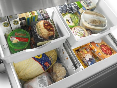 Bước 6: Gắn lại các khay kệ đã tháo ra, sắp xếp thức ăn lại vào tủ đông: