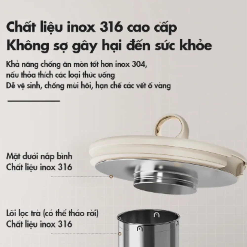 Túi lọc của ấm siêu tốc được làm từ chất liệu inox 316 không gỉ rét.