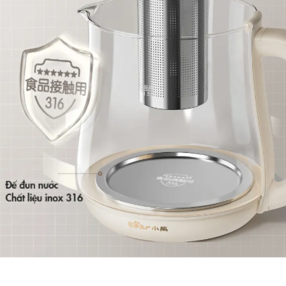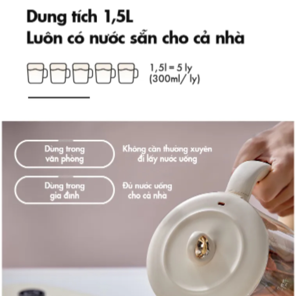 Ấm pha trà Bear YSH-E15M1 có dung tích lên đến 1,5L, cho phép bạn chuẩn bị đồ uống nhiều lượng một cách dễ dàng. Không cần phải lo lắng về việc nước sẽ cạn sớm, bạn có thể uống thỏa thích cả ngày.