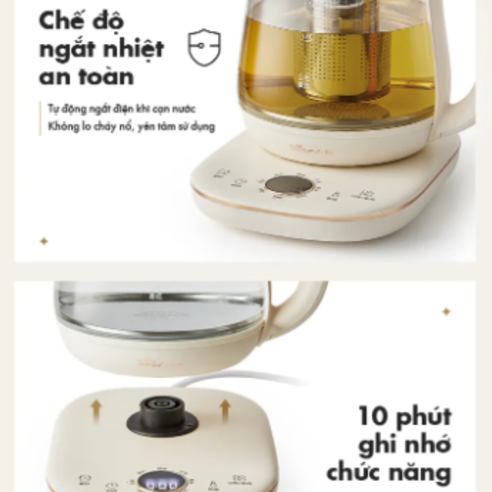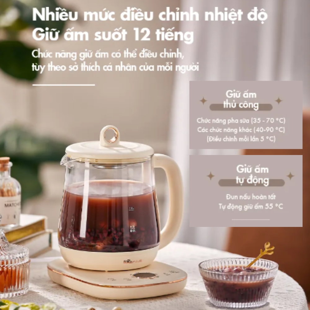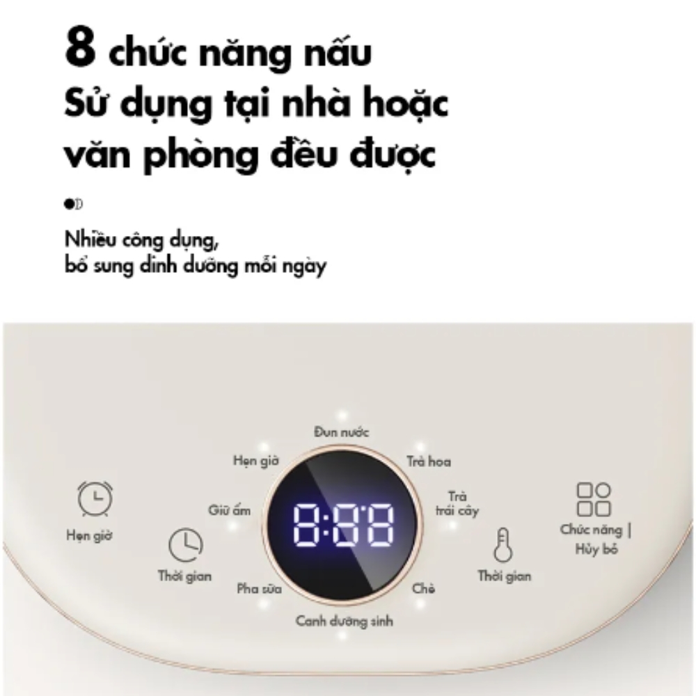 - 8 Chức năng nấu đa dạng từ nước sôi, nấu trà, pha sữa, giữ ấm...