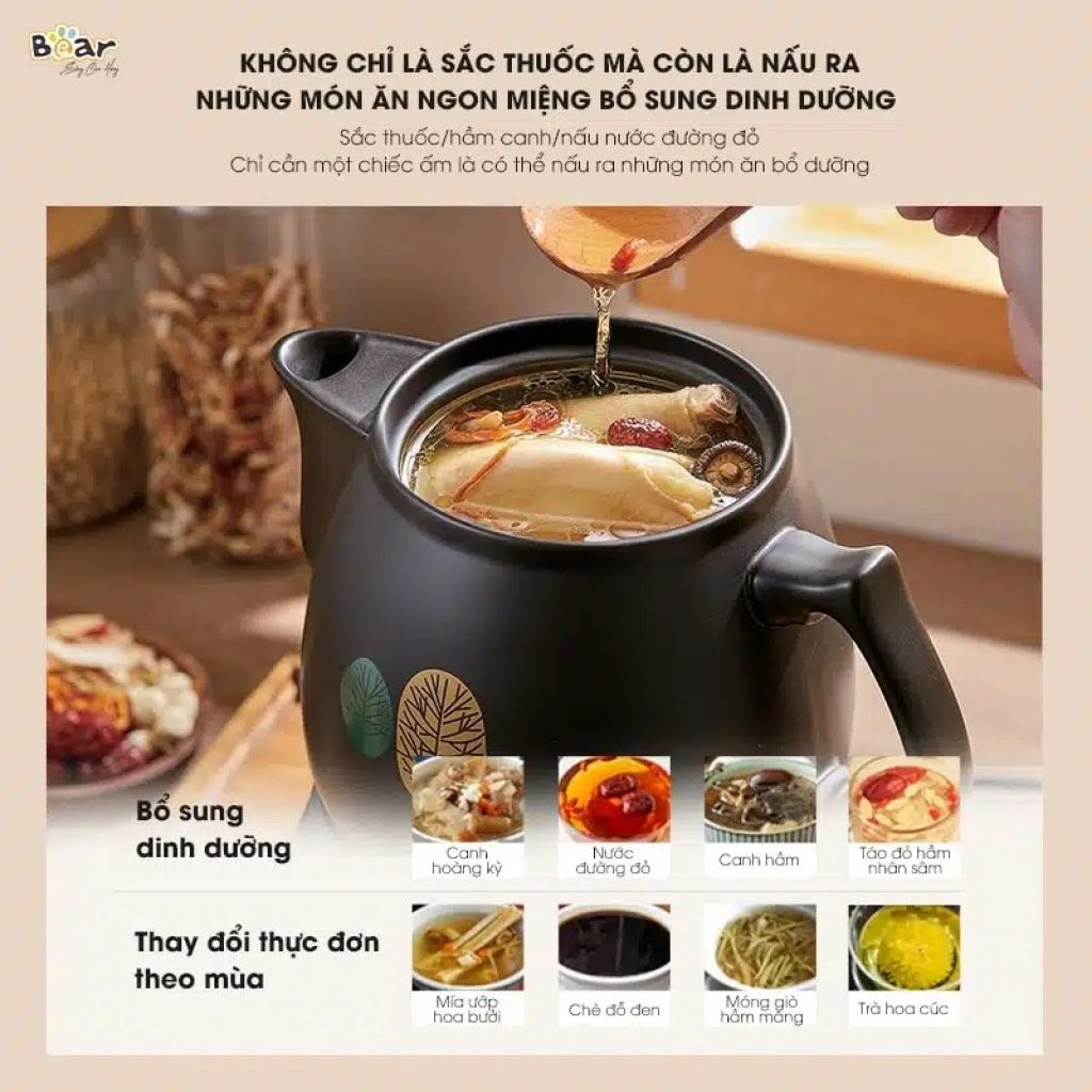 Khi nói đến việc sắc thuốc, việc duy trì nhiệt độ chính xác và sự ổn định là điều vô cùng quan trọng. Để đảm bảo vị nguyên bản trong thuốc thì Ấm Sắc Thuốc Bear SB-AST35 là lựa chọn hoàn hảo cho bạn. Sản phẩm gia dụng nhà bếp này kết hợp giữa truyền thống và công nghệ hiện đại để đảm bảo bạn luôn có nước sắc thuốc hoàn hảo. Với các tính năng nổi bật của ấm như sau: