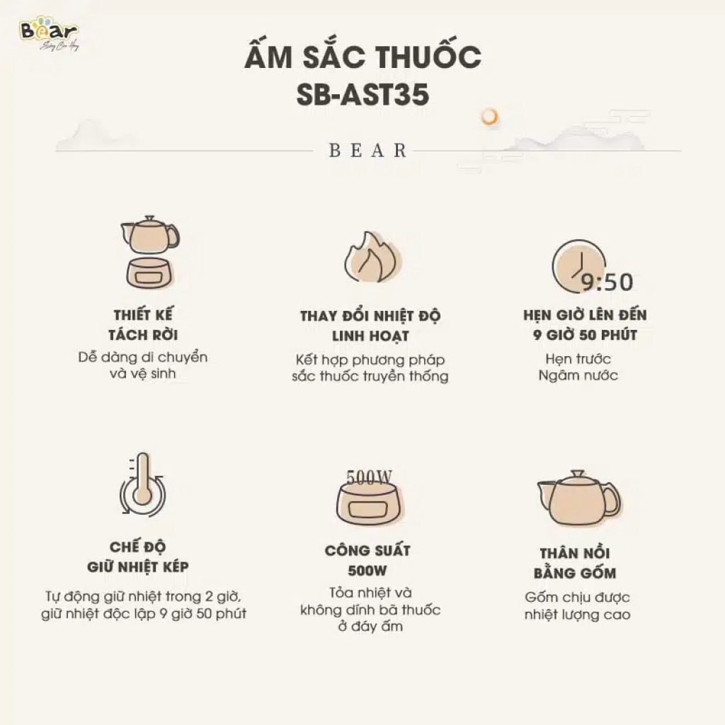 Nếu bạn đang tìm kiếm một ấm sắc thuốc đáng tin cậy và hiện đại, Ấm Sắc Thuốc Bear SB-AST35 là sự lựa chọn tốt nhất để đảm bảo bạn luôn có nước sắc thuốc tốt nhất cho sức khỏe của mình.