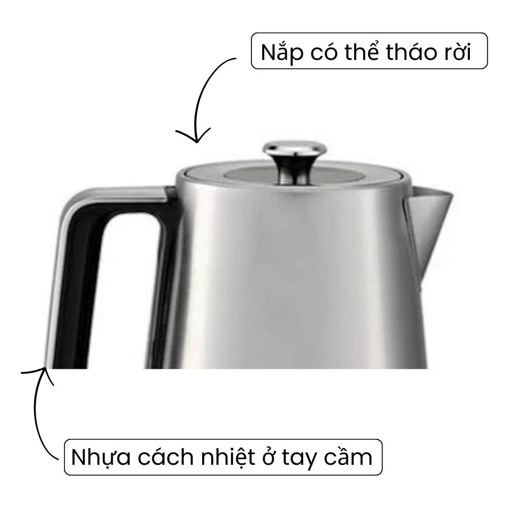 Nắp ấm có thể tháo rời dễ dàng, giúp bạn dễ dàng làm sạch và bảo quản ấm đun.