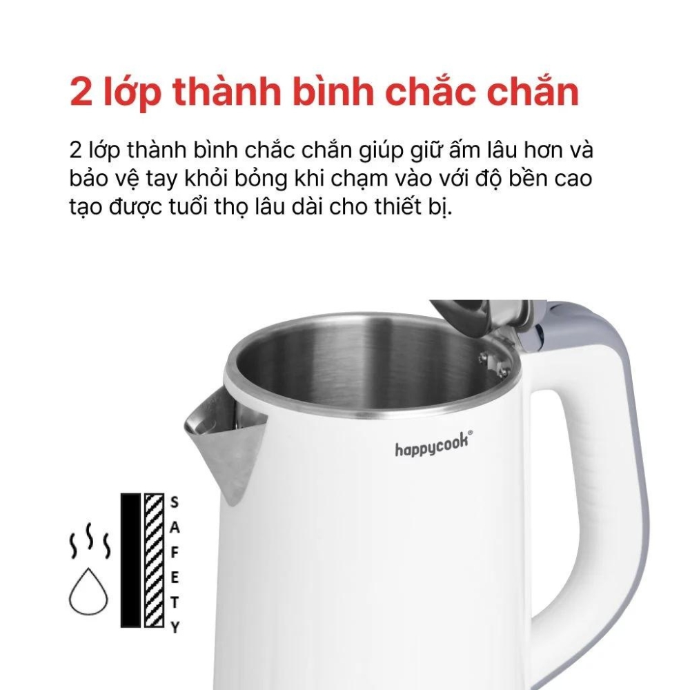 Đối với gia đình nhỏ, việc sở hữu một bình thủy điện - ấm siêu tốc là điều cần thiết và quan trọng để đáp ứng nhu cầu hàng ngày. Ấm Siêu Tốc Inox 2 Lớp 1.2 Lít Happy Cook HEK-120PW không chỉ đáp ứng mọi tiêu chí về kích thước phù hợp mà còn mang lại hiệu quả đun sôi vượt trội và tính an toàn cao, đồng thời bảo vệ sức khỏe của gia đình bạn.