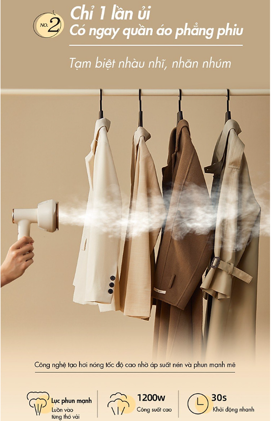 - Công suất lên đến 1200W, dung tích 100ml là phẳng quần áo chỉ 1 phút