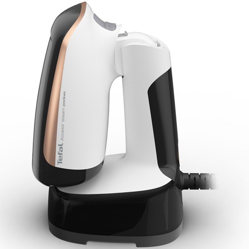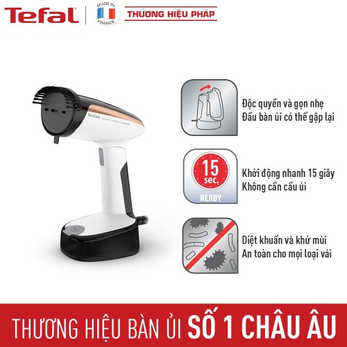 Bàn ủi hơi nước cầm tay Tefal có các thiết kế hiện đại, tính năng dễ sử dụng cho người dùng cùng với chân đế được thiết kế bằng nhựa cách nhiệt sẽ không gây ra hiện tượng nóng khi cầm, an toàn cho người sử dụng. Chân đế cũng được thiết kế một cách chắc chắn giúp máy đứng vững trên mặt đất. Khe phun hơi nước với lượng hơi nước mạnh mẽ giúp loại bỏ mùi và chất gây dị ứng, làm mới và khử trùng tới 99,9% vi khuẩn bám trên quần áo. Làm cho áo quần trong mới hơn rất nhiều.