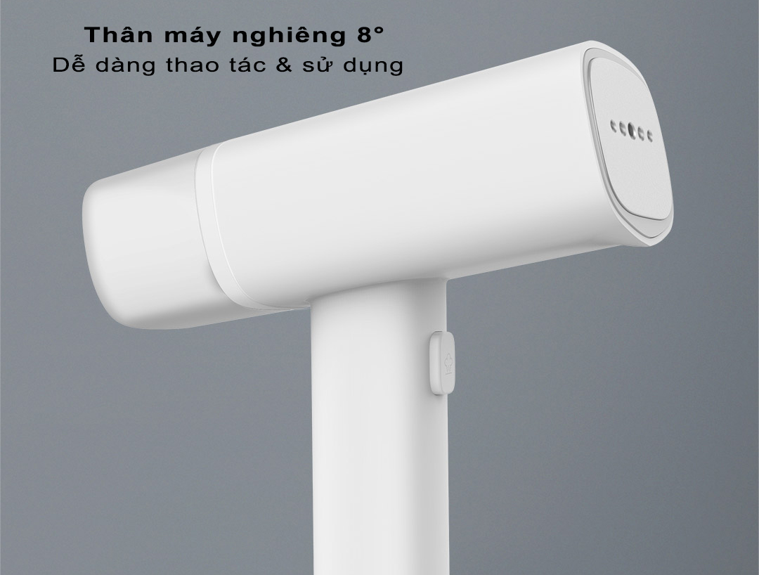 Thiết kế thân máy nghiêng 8° giúp thao tác dễ dàng, hơi nước thấm đều vào quần áo. Chỉ cần ấn giữ nút điều khiển trên tay cầm để ủi, máy sẽ tự động ngắt sau 3 giây khi bạn rời tay, tiết kiệm nước và tăng hiệu quả sử dụng. Tính năng tự động ngắt khi nhiệt độ vượt quá 140°C hoặc 240°C đảm bảo an toàn tuyệt đối.