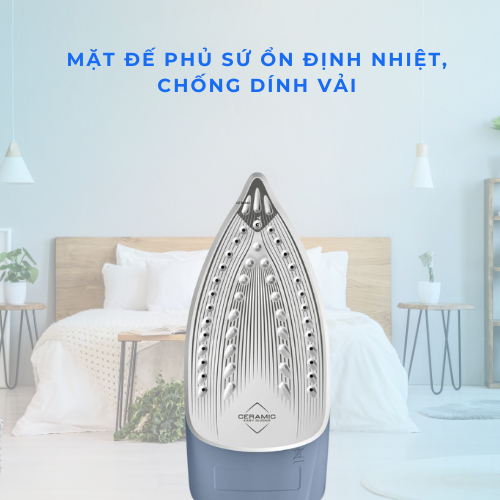Chất liệu này giúp bàn ủi trượt mượt trên mọi loại vải - từ cotton, linen, đến lụa mỏng mà không gây cháy hay dính vải.