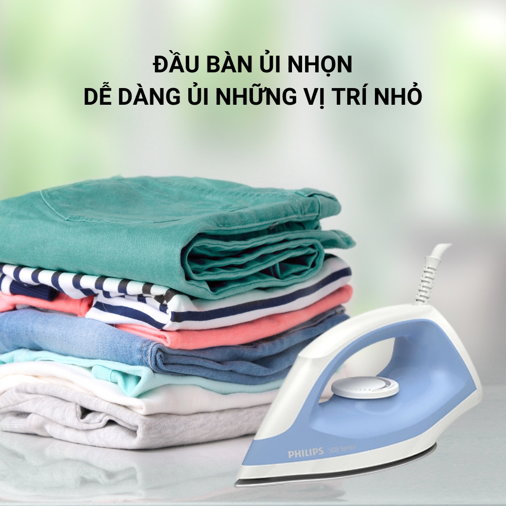 - Mặt đế chống dính, đầu mũi nhọn ủi được những vị trí nhỏ nhất trên áo