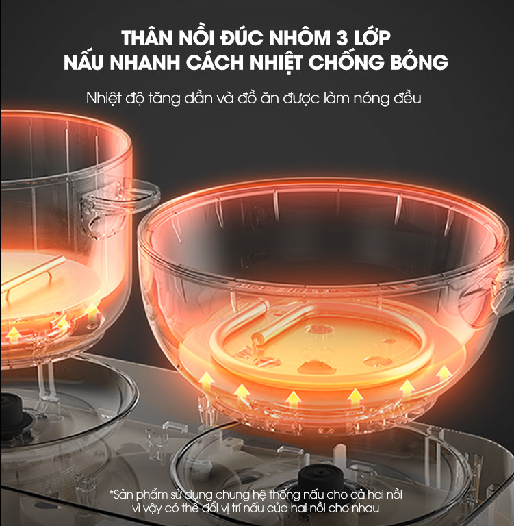- Thiết kế hai nồi – hai bếp nấu riêng biệt