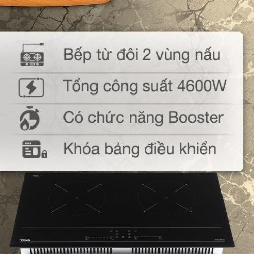 Chức năng Booster cho phép tăng công suất tạm thời, giúp rút ngắn thời gian đun nước hoặc chiên xào, đặc biệt phù hợp cho người bận rộn. Ngoài ra, bếp điện từ đôi Teka IBC 7322 S có khả năng phân bổ công suất thông minh, giúp cân bằng điện năng giữa hai vùng nấu để đảm bảo an toàn và ổn định trong suốt quá trình sử dụng.
