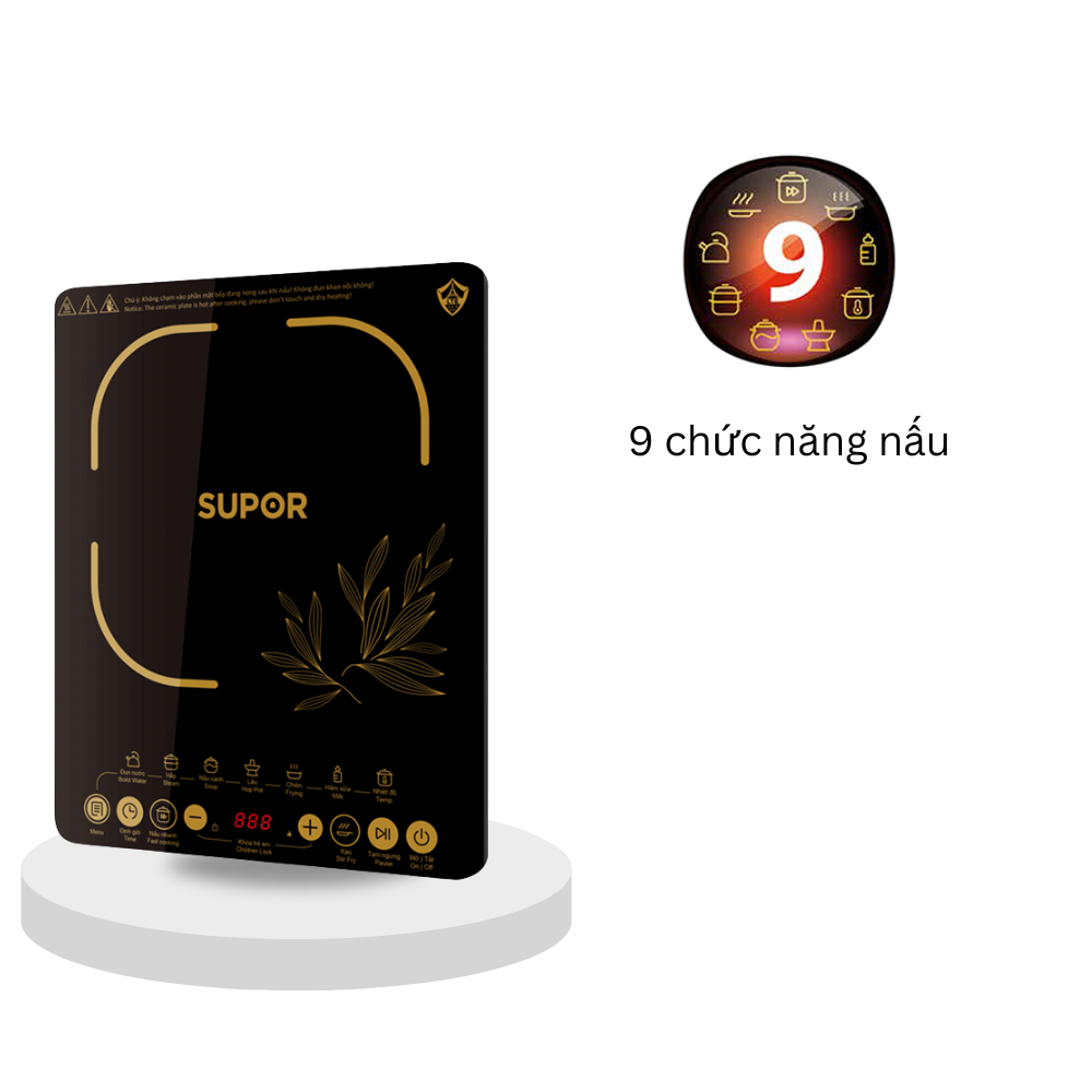 Bếp Điện Từ Supor SDHCB11TVN-YL-210 được tích hợp sẵn 9 chế độ nấu tự động bao gồm: đun nước, hấp, nấu canh, lẩu, chiên, hâm sữa, nhiệt độ, nấu nhanh và xào. Chỉ cần chọn đúng chế độ, bếp sẽ tự động điều chỉnh mức nhiệt lý tưởng, giúp món ăn đạt độ ngon chuẩn vị mà không cần canh chỉnh thủ công phức tạp.