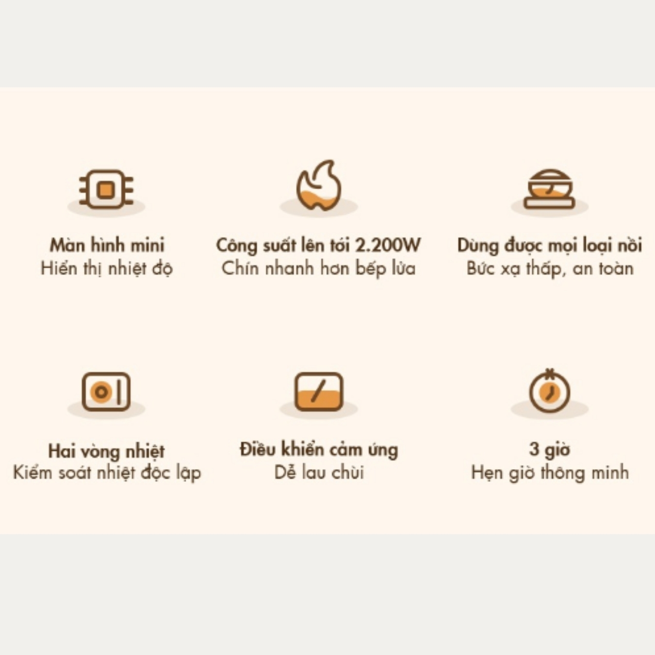 - Bếp hồng ngoại với công suất lên đến 2200W