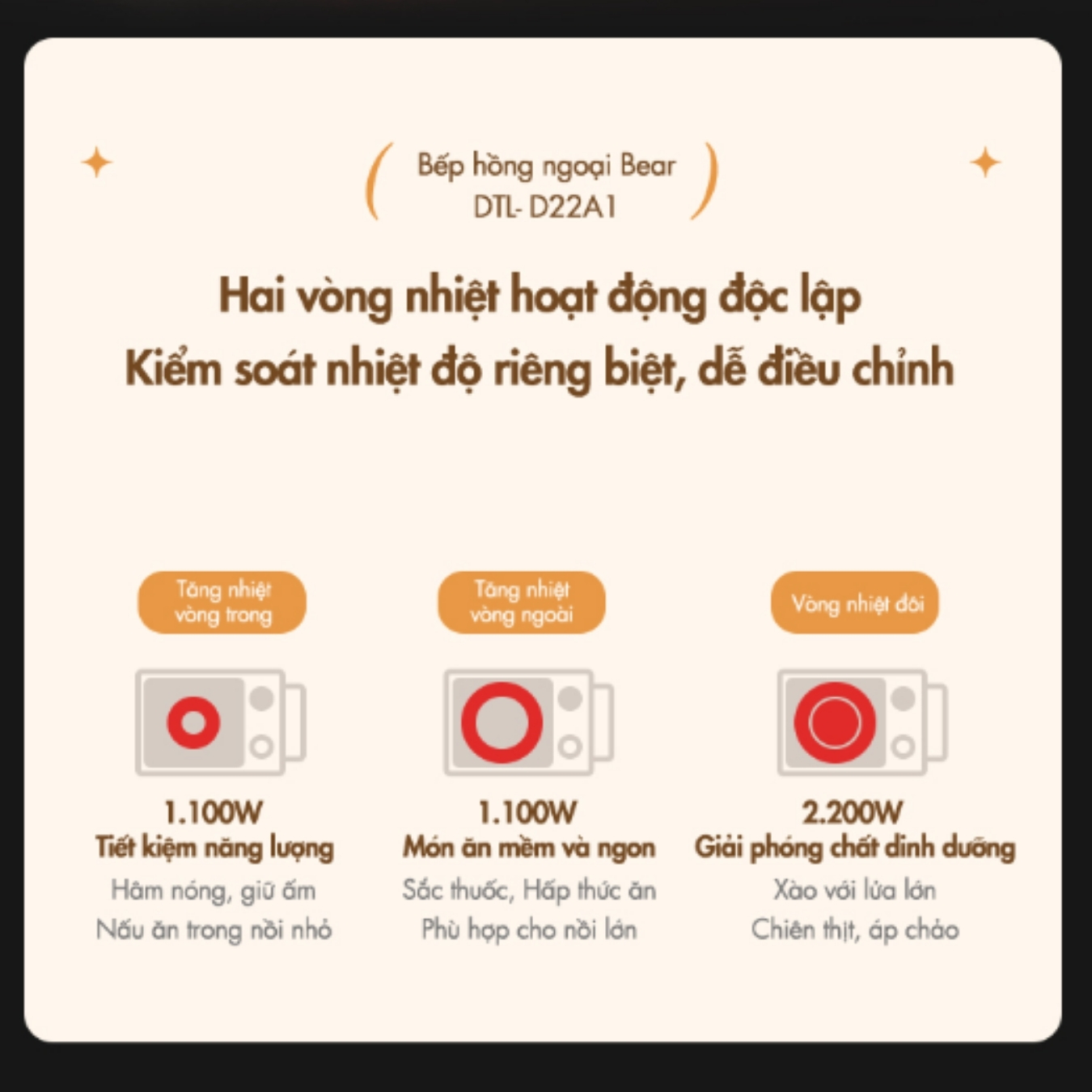 Bếp hồng ngoại đơn Bear DTL-D22A1 không chỉ là một thiết bị nấu ăn thông thường mà còn là sự kết hợp tinh tế giữa hiệu suất, đa dạng chức năng và an toàn cho người dùng.