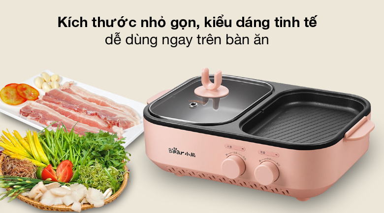 Thiết kế nhỏ gọn cùng màu hồng trẻ trung, tinh tế, bếp lẩu nướng đa năng dùng đẹp cho không gian gia đình