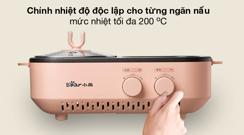 Bếp lẩu nướng đa năng Bear DKL-C12D1 sử dụng đa năng nhờ thiết kế với 2 ngăn nấu tách biệt
