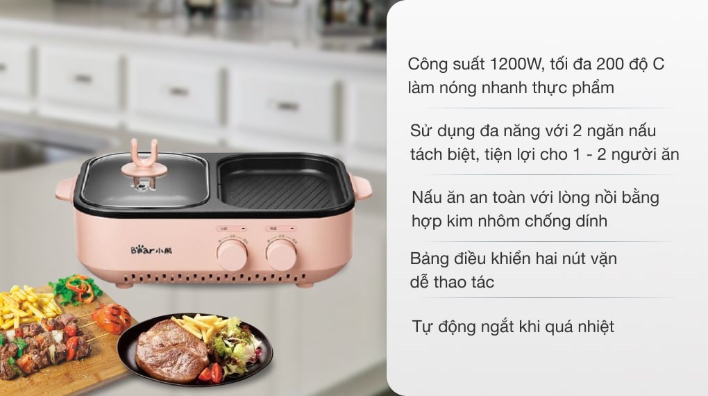 Bếp lẩu nướng đa năng Bear DKL-C12D1 và các thông số