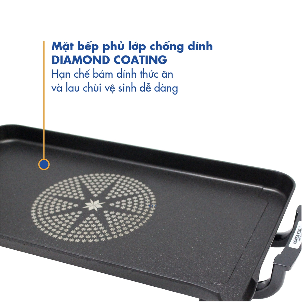 Bếp nướng điện Korea King KGS-253 có thiết kế thanh thoát và sang trọng, được làm bằng kim loại và phủ men chống dính Diamond Coating cao cấp trên bề mặt cho độ bền cao và hạn chế khả năng trầy xước, có đường thoát mỡ và khay hứng mỡ kèm theo đầy tiện lợi, có hai tay cầm cách nhiệt thuận tiện cho việc di chuyển và thao tác vĩ nướng.
