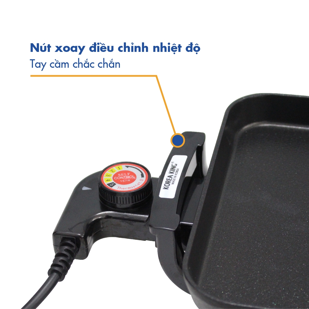 Bếp nướng điện Korea King KGS-253 này trang bị hệ thống điều khiển cơ núm vặn 5 mức công suất để điều chỉnh nhiệt độ nướng phù hợp cùng với đèn báo hoạt động giúp người sử dụng dễ kiểm soát.