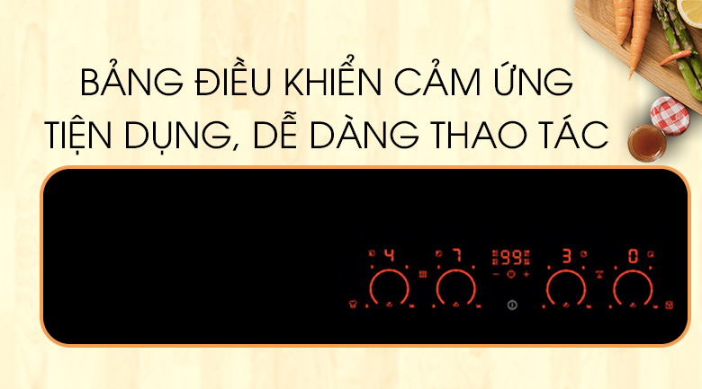 - Tiện ích: hẹn giờ, liên kết vùng nấu lớn, chức năng hâm nóng, làm nóng nhanh, bảng điều khiển cảm ứng trượt
