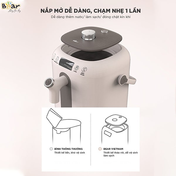 Bình thủy điện Bear KE-B30V1 đi kèm với một khóa an toàn đặc biệt, giúp tránh tình trạng trẻ em mở bình thủy điện mà không có sự giám sát của người lớn. Điều này đảm bảo an toàn tuyệt đối cho gia đình của bạn.