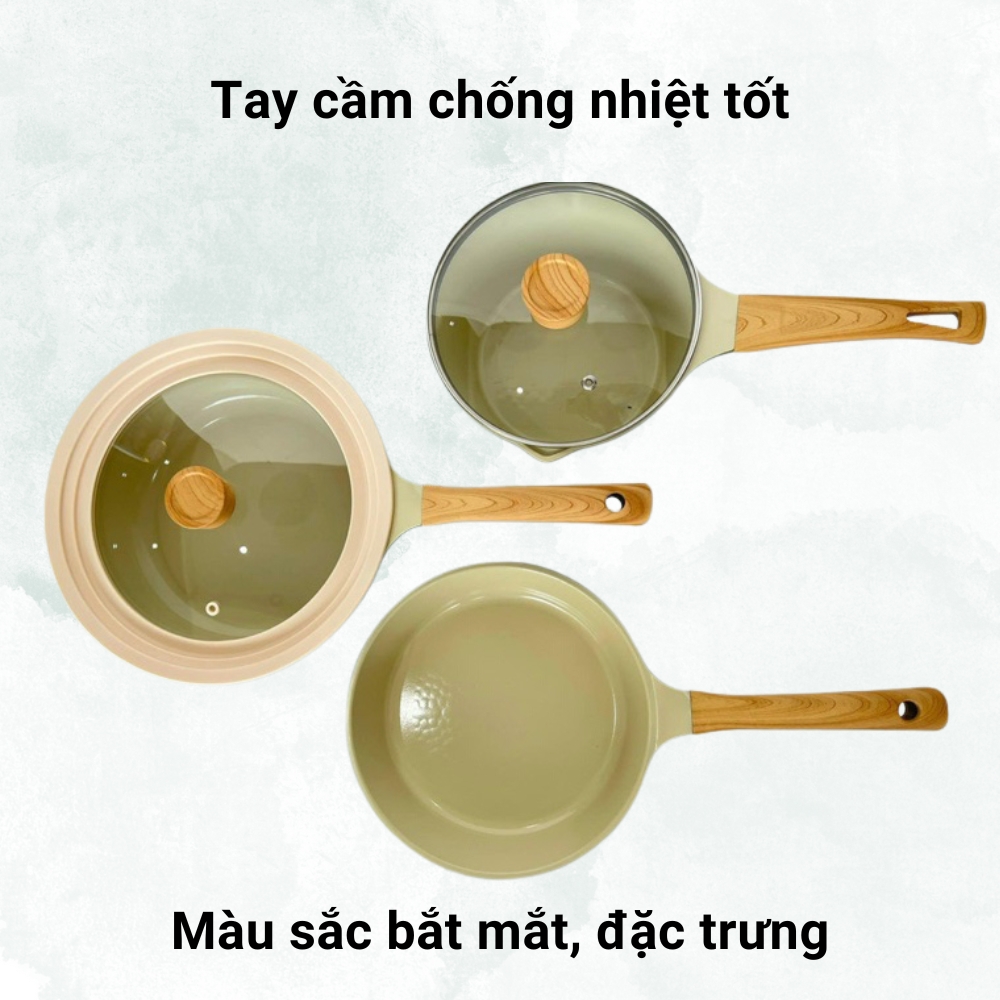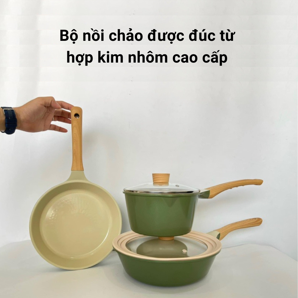 - Bộ nồi chảo gồm 3 nồi chảo với kích thước: 20/24/28 cm