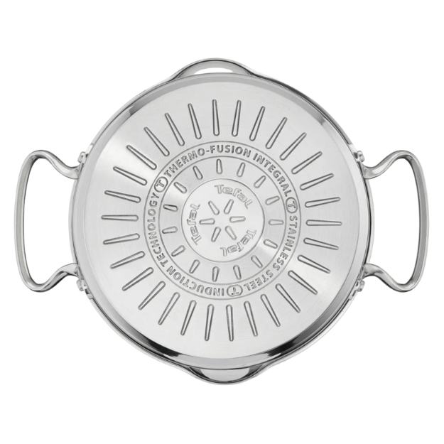 Một trong những ưu điểm nổi bật nhất của bộ nồi inox Tefal Duetto Plus G719SA55 là đáy 3 lớp cao cấp. Lớp lõi nhôm ở giữa giúp tản nhiệt nhanh, lan tỏa đều khắp đáy và thành nồi, giúp món ăn chín đều, giữ trọn dinh dưỡng và hương vị tự nhiên.