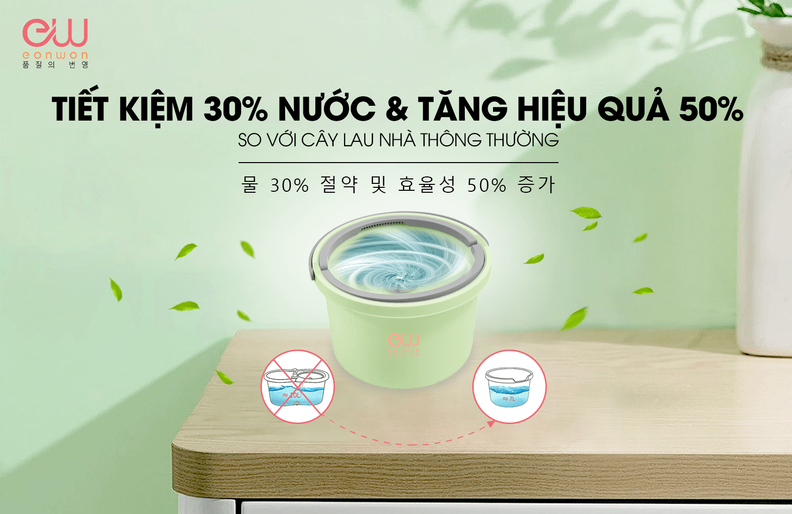 So với cây lau nhà thông thường, Bộ Lau Nhà Tách Nước Bẩn Eonwon EW-434L giúp tiết kiệm đến 30% lượng nước tiêu thụ và tăng hiệu quả làm sạch lên đến 50%. Nhờ hệ thống tách nước thông minh, bạn không phải lo lắng về việc mang nước bẩn đi khắp sàn nhà khi lau dọn.