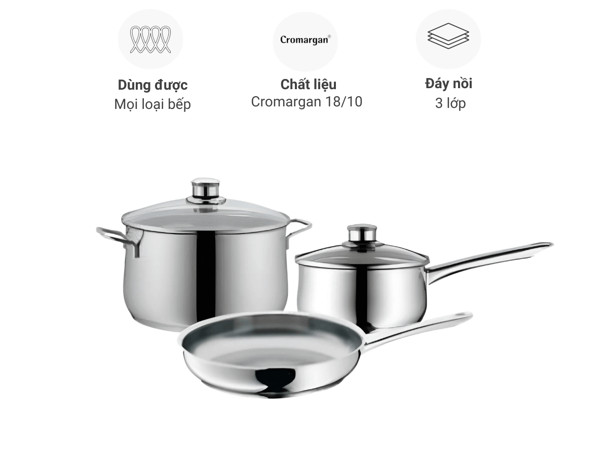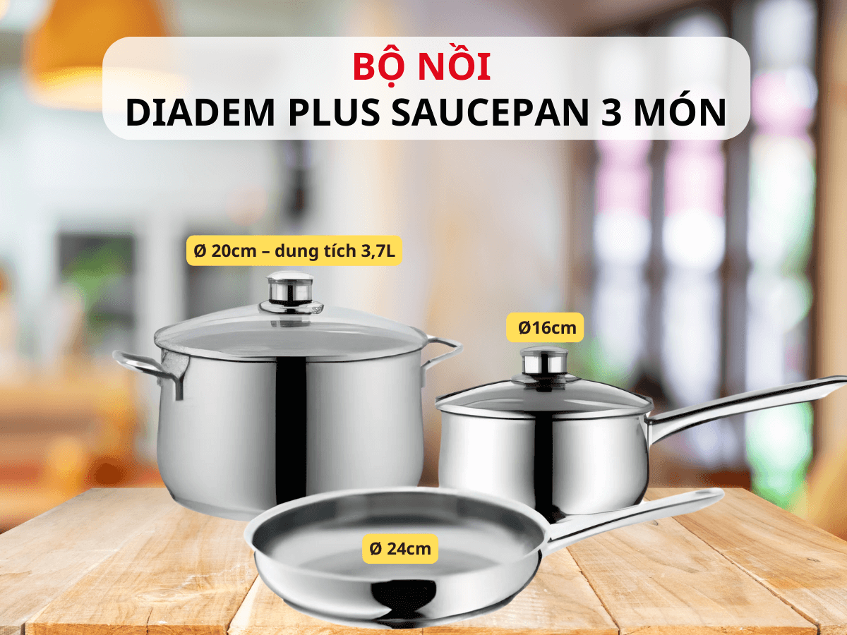 Bộ Nồi 3 Món WMF DIADEM PLUS 0739176040 không chỉ là những dụng cụ nấu ăn thông thường mà còn là trợ thủ đắc lực, giúp bạn chế biến những món ăn ngon miệng, đảm bảo an toàn và tiết kiệm thời gian. Với chất liệu thép không gỉ Cromargan độc quyền, công nghệ đáy TransTherm và nhiều ưu điểm vượt trội khác, bộ nồi này chắc chắn sẽ làm hài lòng cả những đầu bếp khó tính nhất.