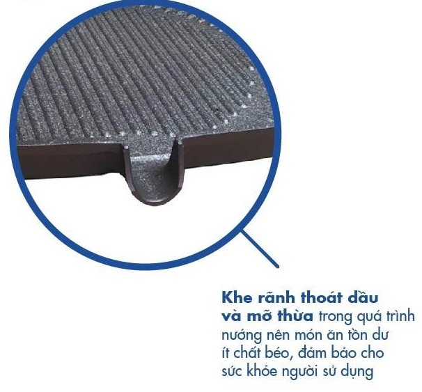 Chảo nướng vuông Korea King là gia dụng có thiết kế khe rãnh thoát dầu và mỡ thừa trong quá trình nướng nên món ăn tồn dư ít chất béo, đảm bảo cho sức khỏe người sử dụng.