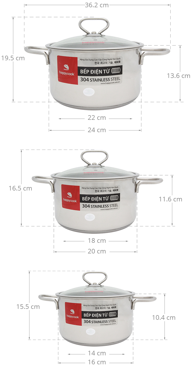 Bộ nồi gồm 3 kích thước: 16 -20 -24 cm.