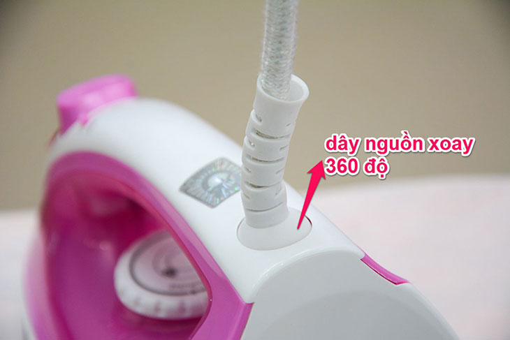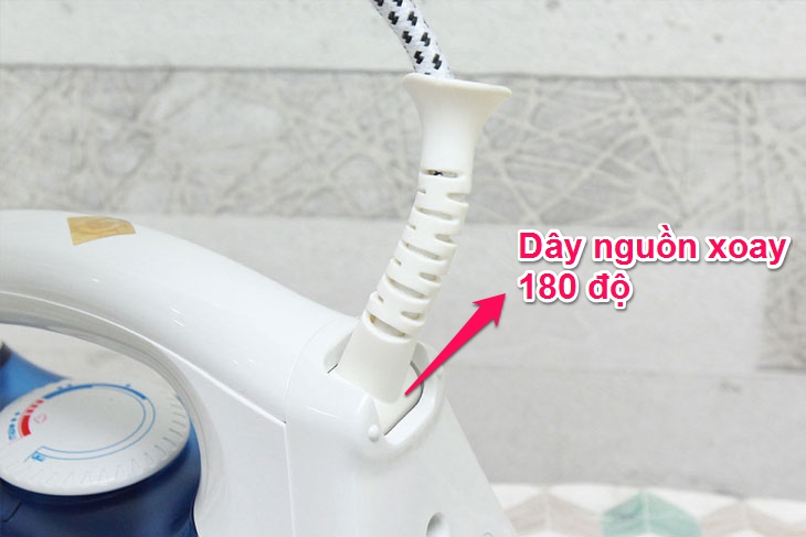 Không xoắn dây (dây nguồn xoay 360 độ): Dây nguồn của bàn ủi có thể xoay 360 độ để không gây vướng víu lúc ủi đồ.