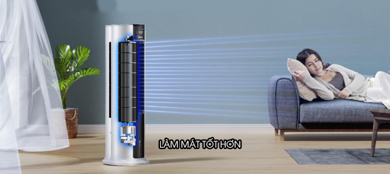 Quạt điều hòa không phải máy lạnh. Trong điều kiện lý tưởng, thiết bị có thể giúp giảm từ 4–15°C so với nhiệt độ môi trường tùy vào độ ẩm, không gian sử dụng.