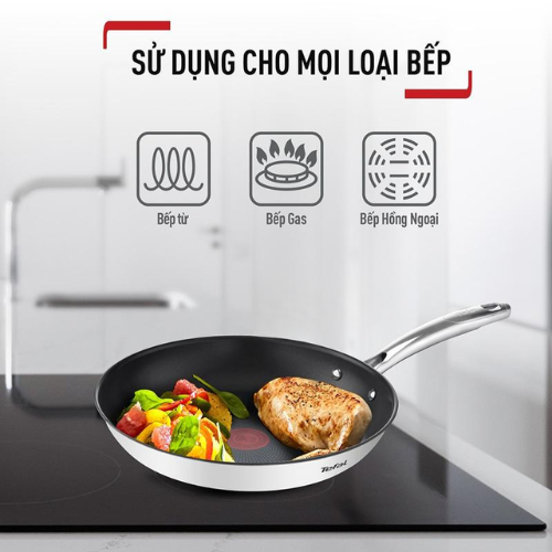 Điểm khác biệt của chảo chiên inox Tefal Duetto Plus là khả năng tương thích với mọi loại bếp, từ bếp gas, bếp điện, đến bếp từ hiện đại.