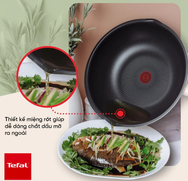 Điểm nổi bật của chảo Tefal So Matcha chính là công nghệ Thermo-Spot độc quyền. Khi chảo đạt đến nhiệt độ lý tưởng để nấu ăn, dấu chấm đỏ ở giữa chảo sẽ chuyển sang màu đồng nhất, giúp bạn dễ dàng nhận biết và bắt đầu nấu nướng. Điều này đảm bảo mọi món ăn đều được chế biến hoàn hảo.