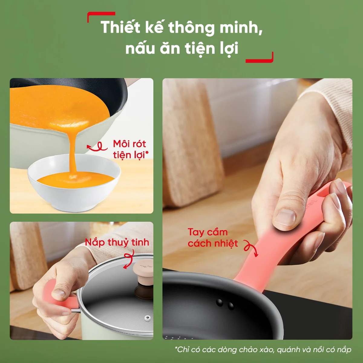 Chảo được thiết kế thông minh với miệng rót giúp dễ dàng đổ xốt, rót dầu hay rót thức ăn ra bát đĩa mà không bị vương vãi. Tay cầm cách nhiệt chắc chắn, giúp bạn thao tác dễ dàng, an toàn trong quá trình nấu nướng.