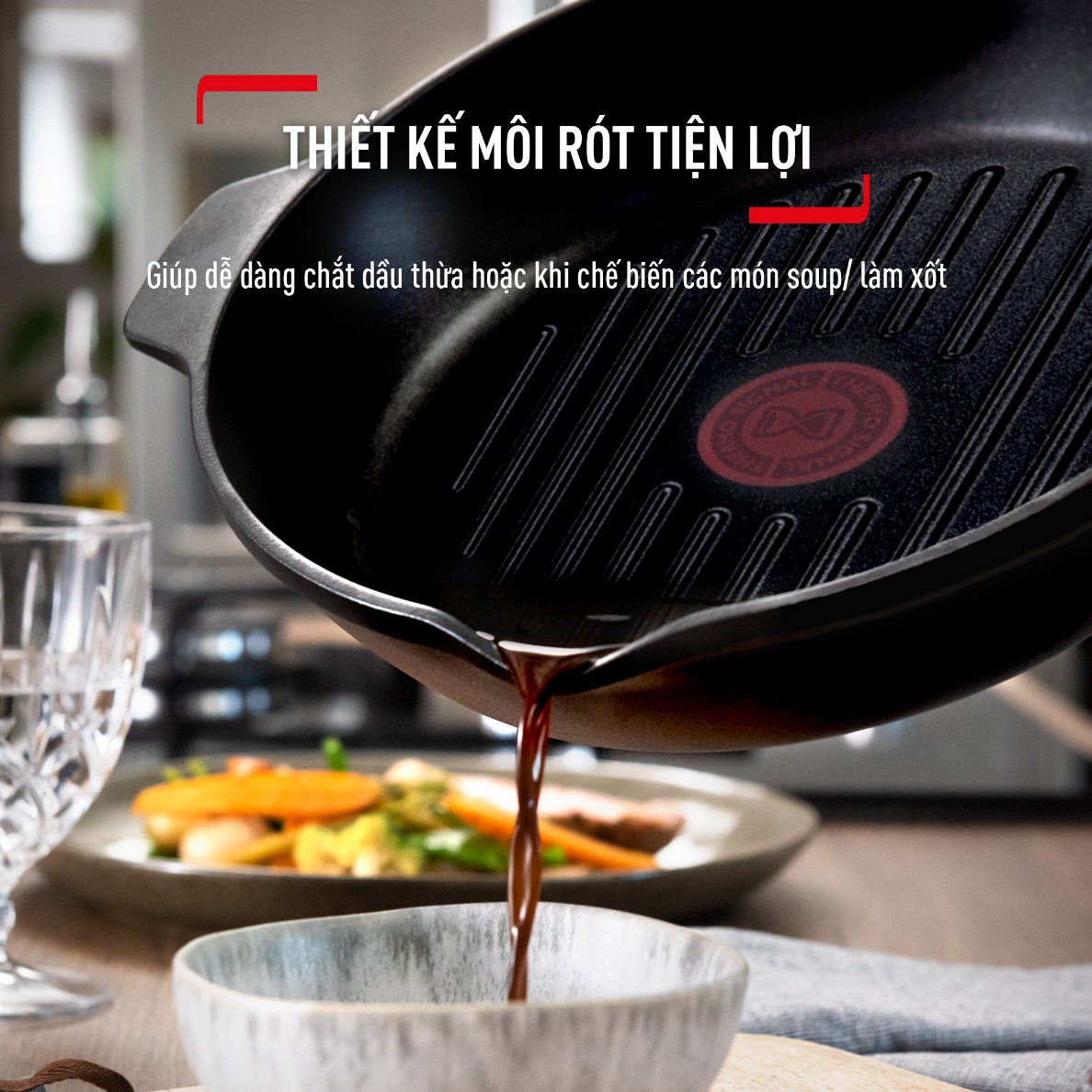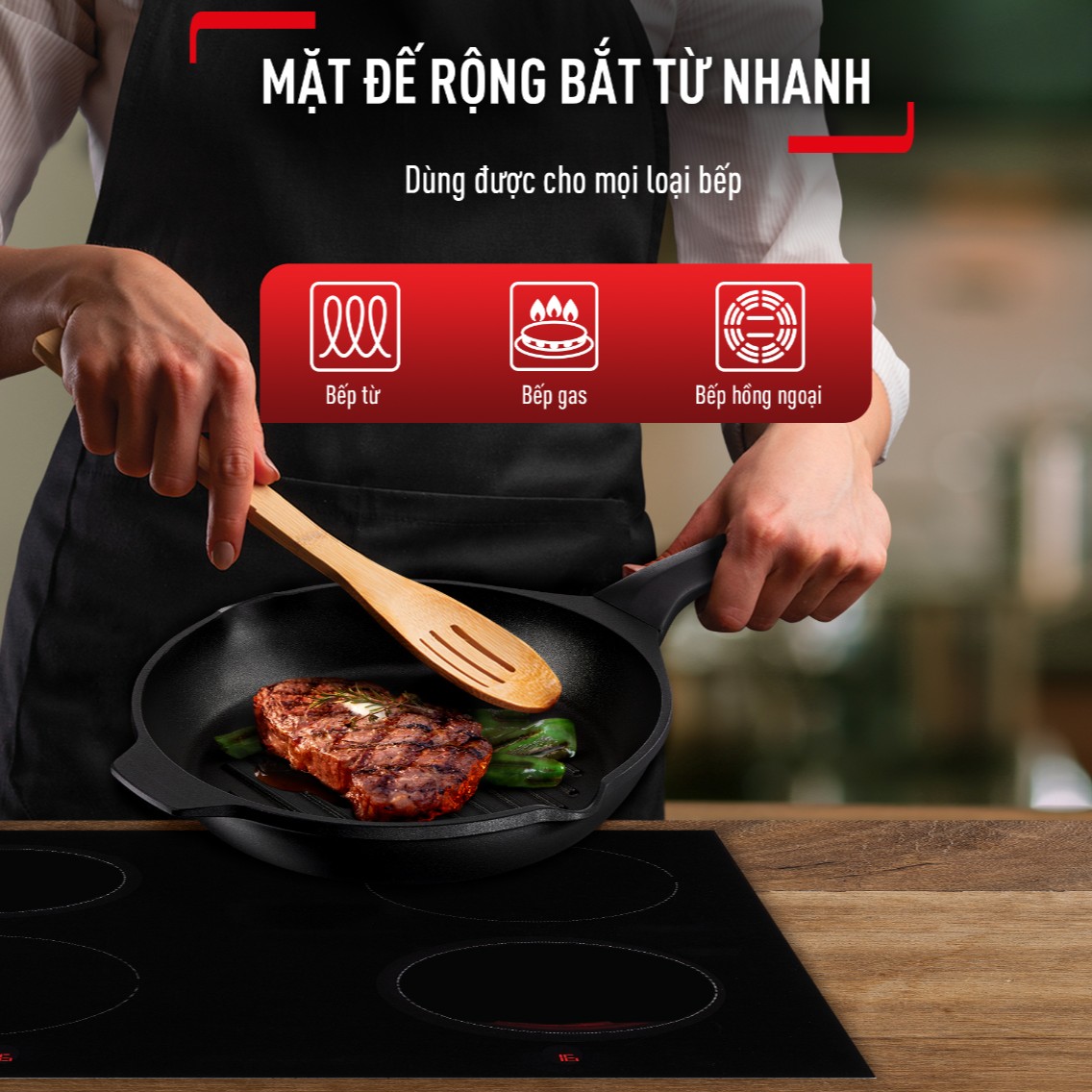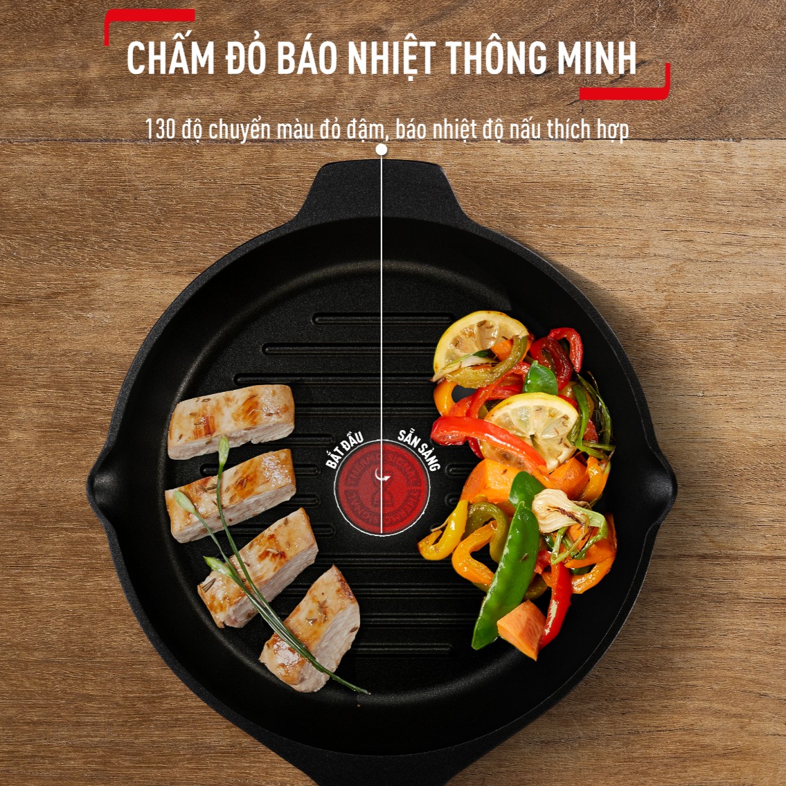 Thiết kế tinh tế: Màu đen sang trọng, đường kính 26cm, rãnh BBQ hạn chế dầu mỡ