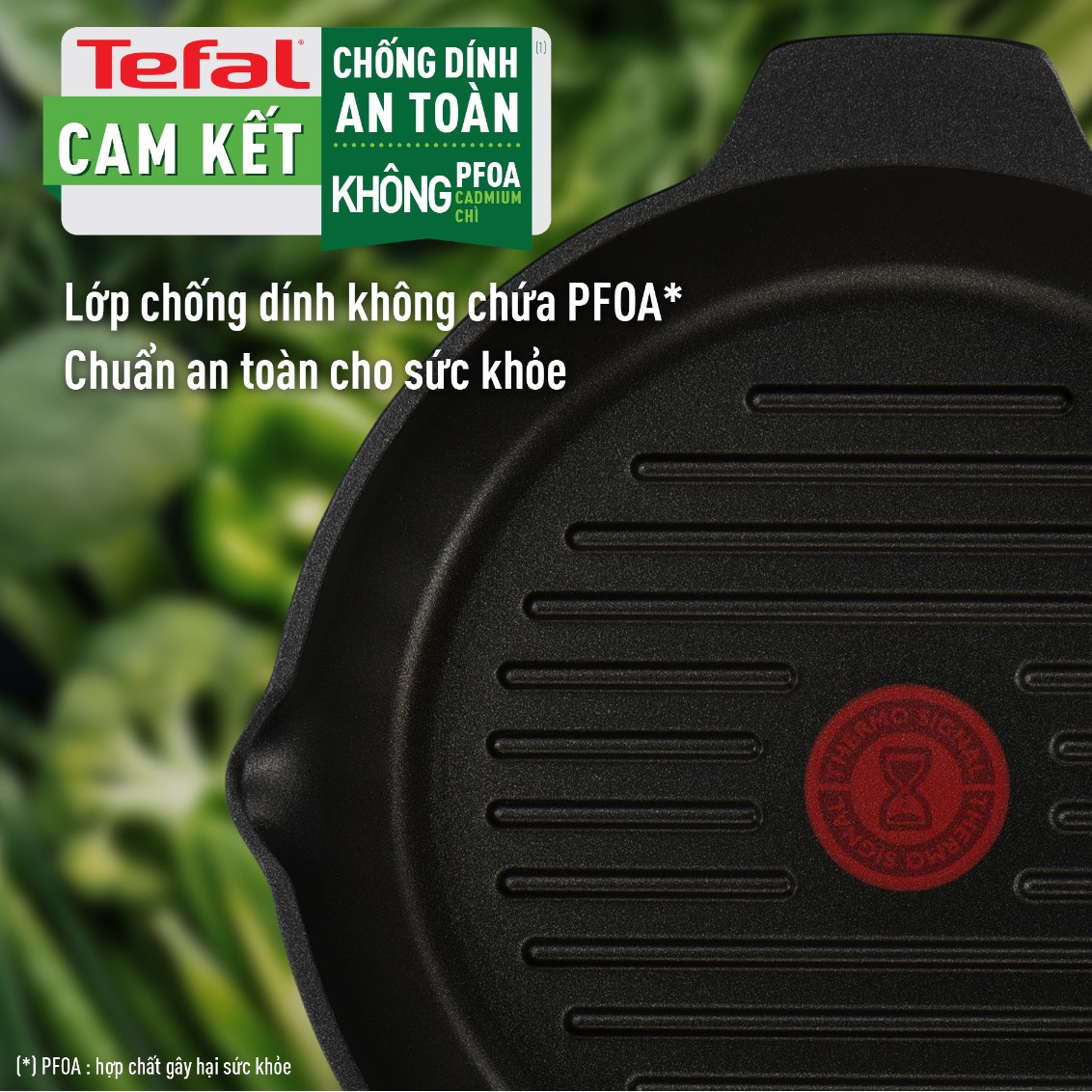 Chảo nướng Tefal Robusto 26cm E2494044 được phủ lớp chống dính Titanium cao cấp, bền gấp đôi so với lớp chống dính thông thường (tương đương 24.000 lần chà nhám). Lớp phủ này hoàn toàn không chứa PFOA, chì hay cadmium, đảm bảo an toàn sức khỏe cho người dùng.