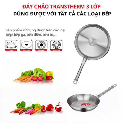 Chảo sử dụng cấu tạo đáy 3 lớp (Tritech®) gồm: inox – nhôm – inox.