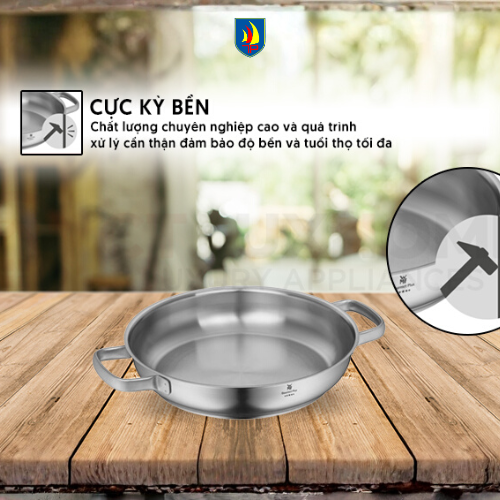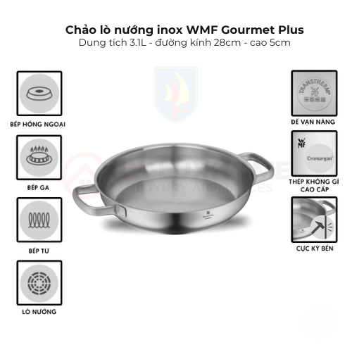 Khi nhắc đến các sản phẩm nồi chảo cao cấp cho gia đình, thương hiệu WMF của Đức luôn giữ vị trí hàng đầu. Trong số đó, Chảo lò nướng inox WMF Gourmet Plus 28cm - 0726286031 nổi bật nhờ chất liệu vượt trội, độ bền ấn tượng và khả năng sử dụng linh hoạt trên nhiều thiết bị nấu nướng. Đây là dòng chảo có thể đáp ứng hầu hết nhu cầu chế biến món Âu - Á, từ áp chảo, chiên nhẹ, nướng cá, nướng thịt đến món tráng miệng trong lò nướng.