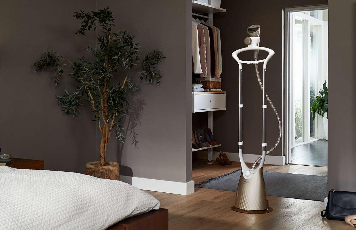 Bàn ủi hơi nước đứng được cài đặt nhiều tốc độ phun hơi nước, sức hút của đầu ủi hơi nước. Nhờ đó, bàn ủi có thể ủi thẳng cho mọi chất liệu vải từ jean, cotton cho đến len, lụa, sa tanh…