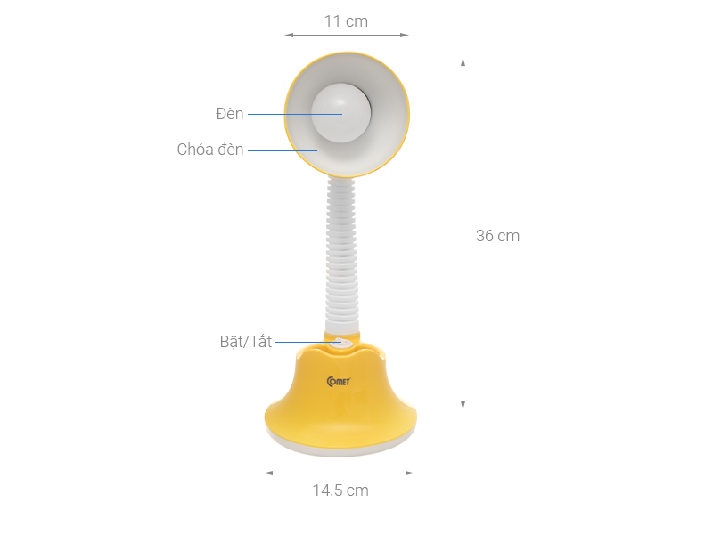Đèn bàn Comet CT413 là lựa chọn lý tưởng cho góc học tập và làm việc nhờ thiết kế tinh tế, ánh sáng an toàn và tính năng tiện dụng. Sản phẩm không chỉ mang đến nguồn sáng chất lượng mà còn góp phần làm đẹp cho không gian sống của bạn.