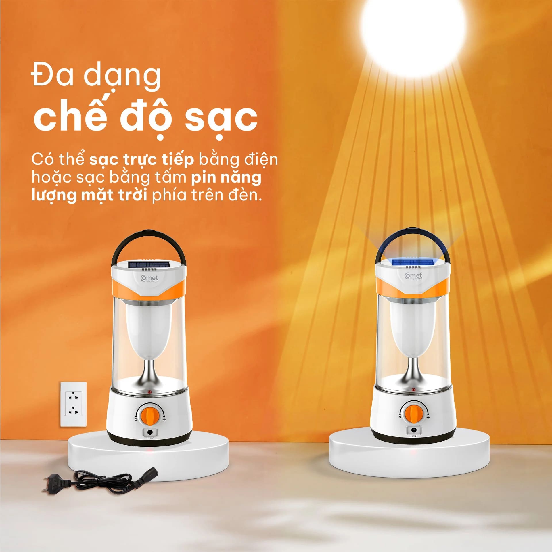 Đặc biệt, Đèn Sạc Tích Điện LED Comet CRL3103S còn được thiết kế cổng sạc năng lượng mặt trời, vừa giúp tiết kiệm điện năng, vừa thân thiện với môi trường. Với cổng sạc năng lượng mặt trời, người dùng có thể thoải mái sử dụng đèn ngay cả ở những nơi không có nguồn điện, rất lý tưởng cho các chuyến dã ngoại, cắm trại.