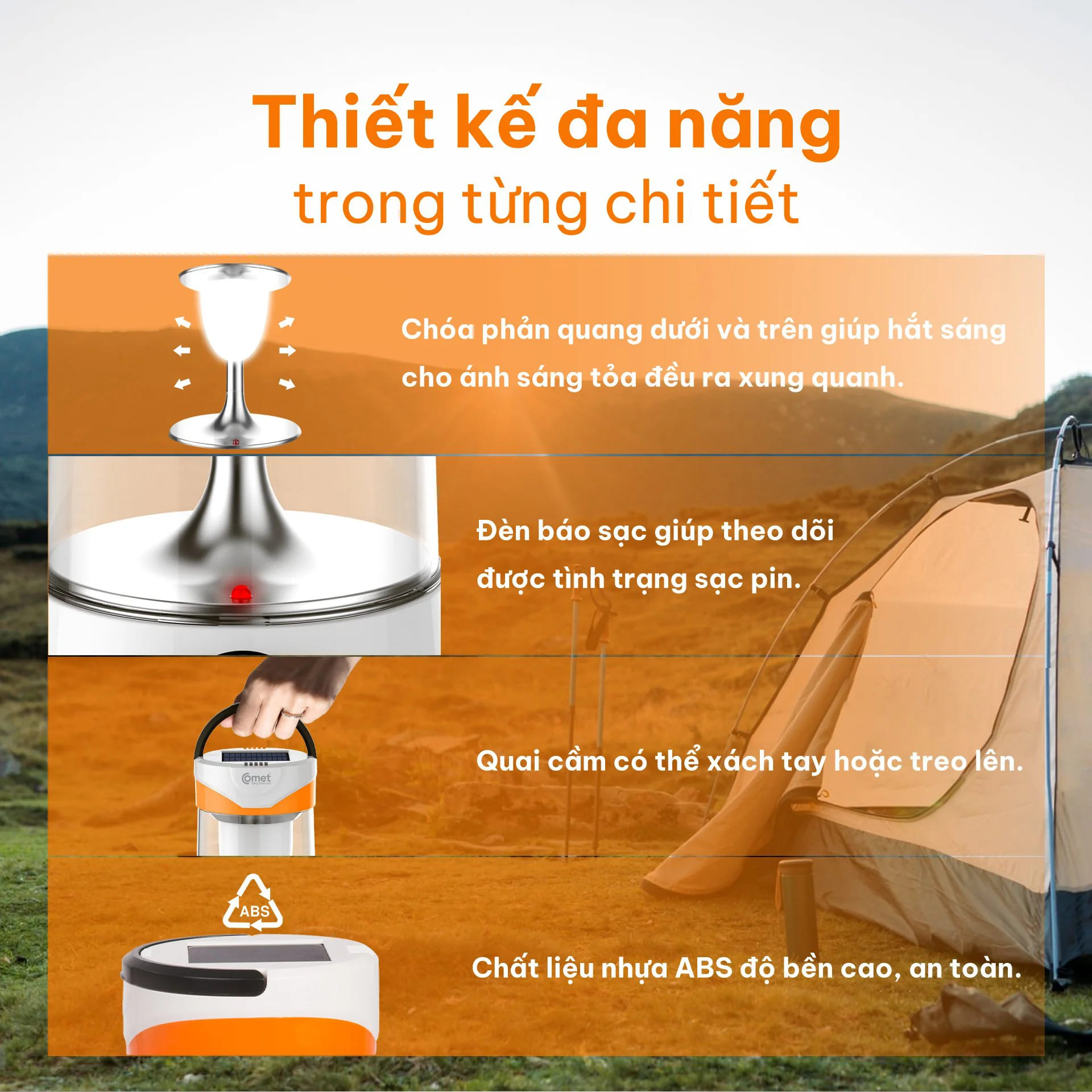 Tiện ích: Sạc năng lượng mặt trời, điều chỉnh ánh sáng, móc treo