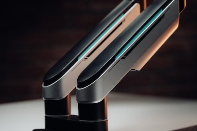 Thiết kế tay đỡ đôi được tính toán kỹ lưỡng để đảm bảo sự cân bằng giữa hai màn hình, hạn chế rung lắc ngay cả khi người dùng thường xuyên điều chỉnh vị trí.