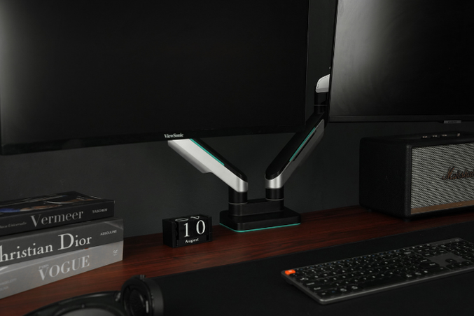 So với việc đặt hai màn hình trên chân đế riêng lẻ, giá đỡ màn hình đôi giúp giải phóng đáng kể diện tích mặt bàn, tạo không gian cho các phụ kiện bàn làm việc khác.