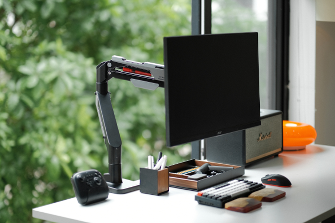 Thay vì chiếm nhiều diện tích với chân đế truyền thống, giá đỡ màn hình giúp giải phóng không gian mặt bàn, tạo điều kiện sắp xếp thêm các phụ kiện bàn làm việc như bàn phím, giá đỡ laptop hay sổ tay.