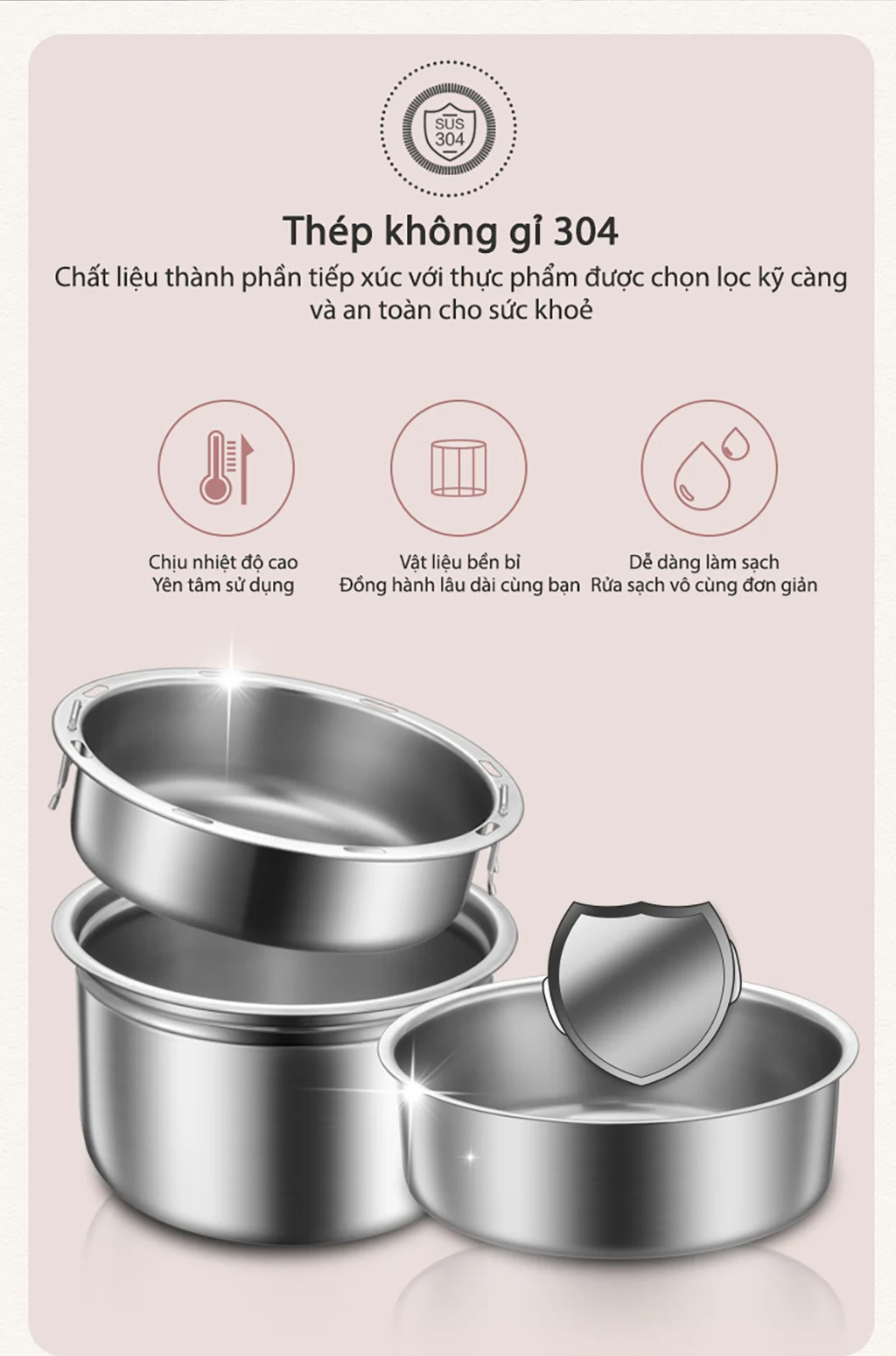 Bear sử dụng các khay đựng thức ăn làm từ thép không gỉ 304 cao cấp. Loại chất liệu này có khả năng chịu nhiệt cao, bền bỉ theo thời gian, vừa đảm bảo an toàn sức khỏe cho người dùng và dễ dàng vệ sinh lau chùi sau mỗi lần sử dụng.