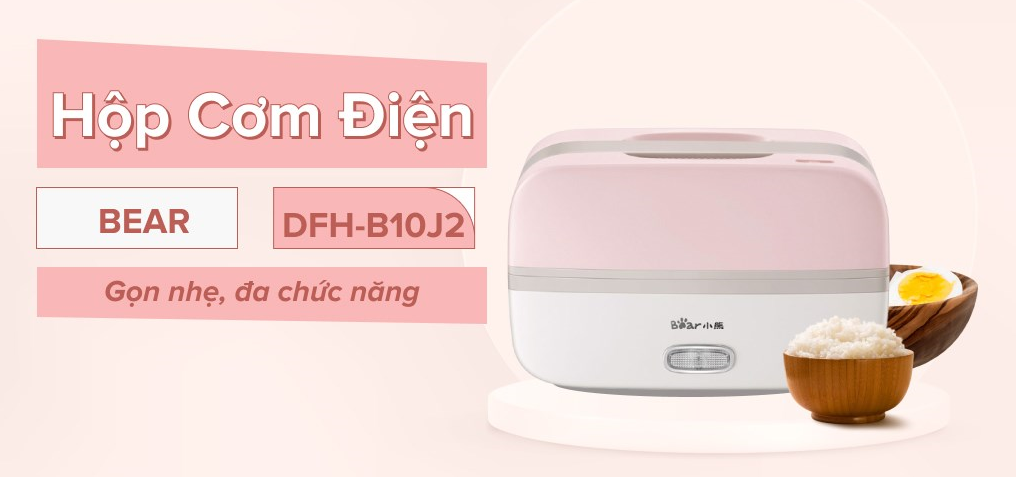 Hộp cơm điện cầm tay mini đa năng Bear DFH-B10J2 là gia dụng nhà bếp có chức năng hâm nóng - nấu nhanh với công nghệ vi áp 3 chiều, công suất 270W, thiết kế nhỏ gọn, dễ mang đi, chất liệu nhựa ABS - inox 304 an toàn cho sức khỏe, chức năng đa dạng, dễ dùng, thích hợp cho các cá nhân.