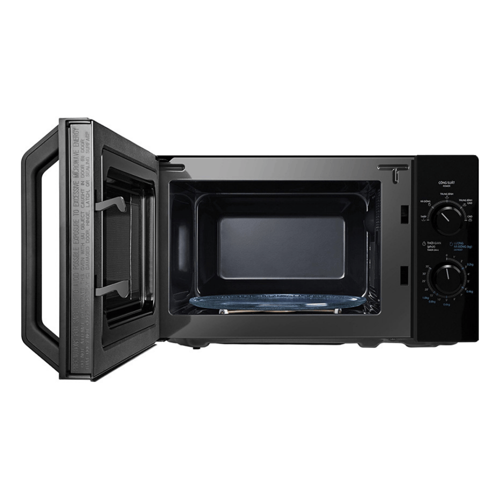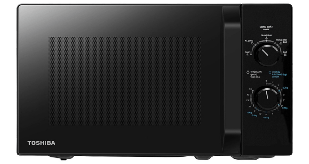 Toshiba MW2-MM20P(BK) sử dụng bảng điều khiển nút xoay truyền thống với chú thích bằng tiếng Việt, thân thiện với mọi người dùng, kể cả người lớn tuổi.